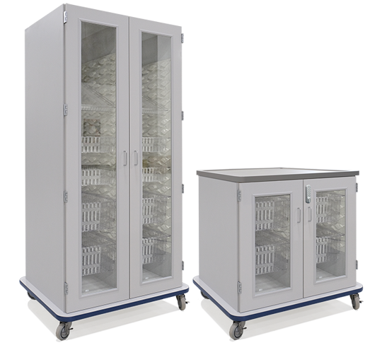 Picture above is a medium width gray laminate cart with wire pulls and optional glass doors & digital e-locks