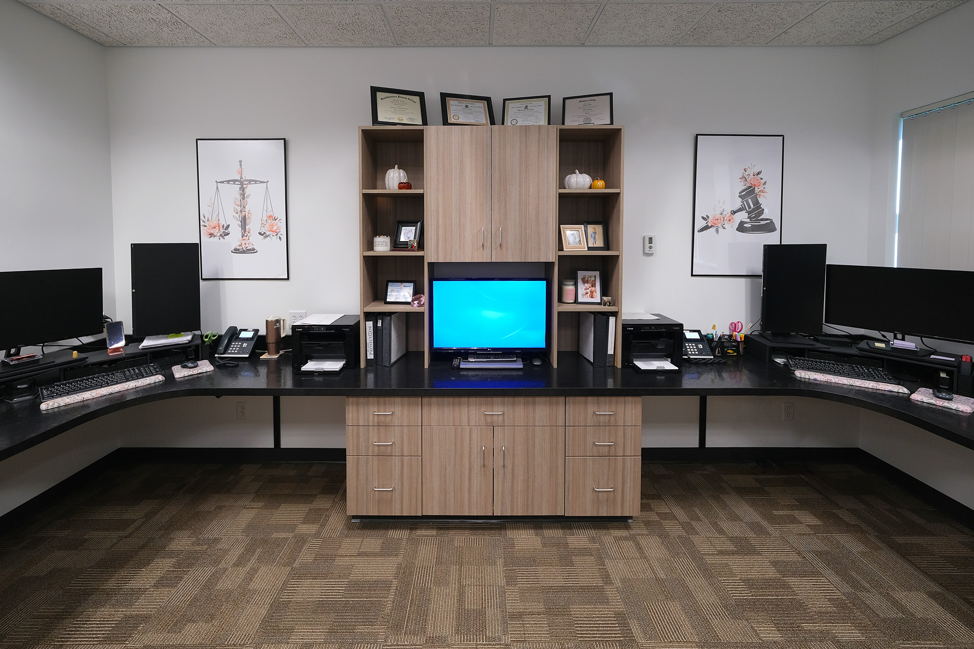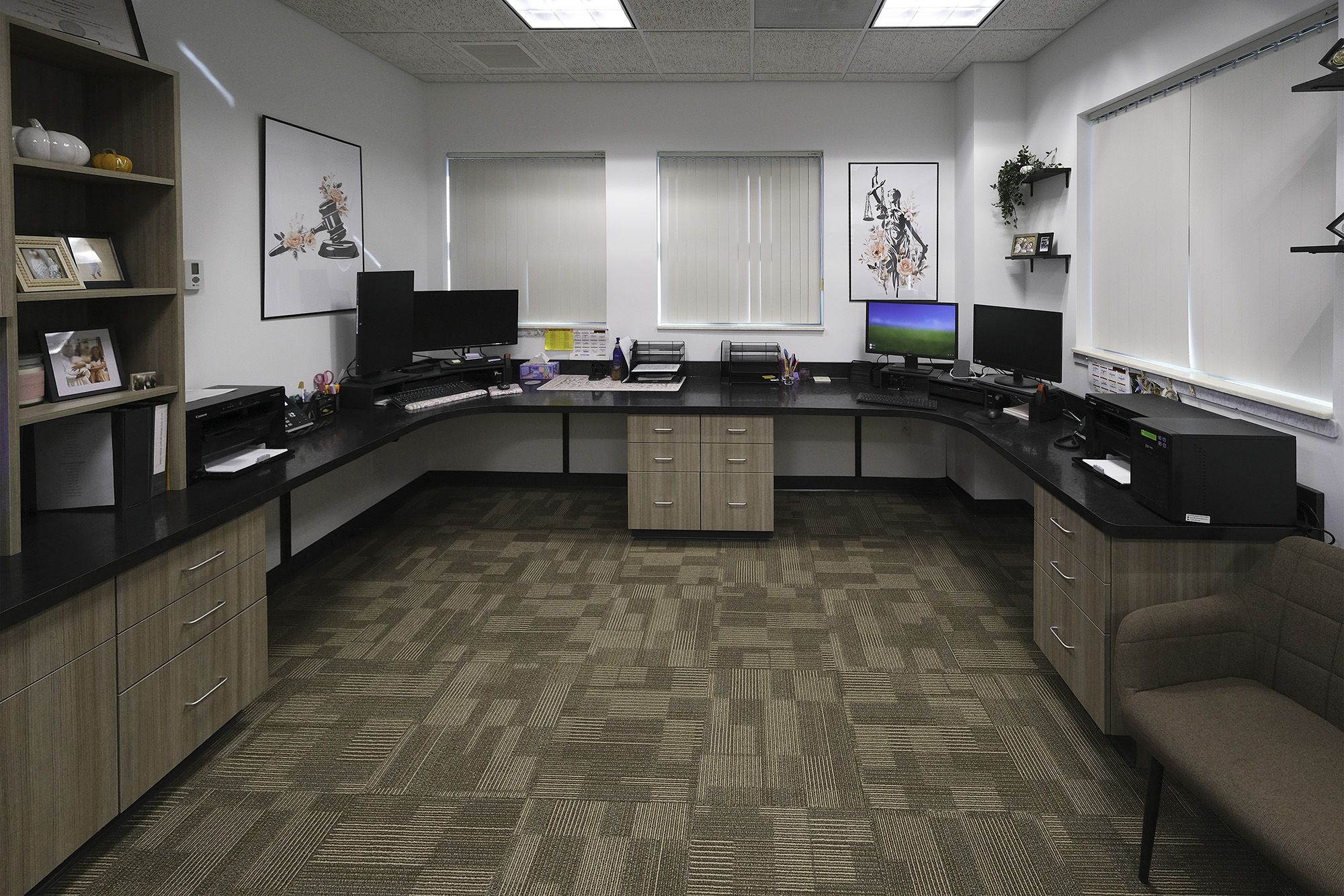 Cooperworks and Middendorf & Reuss Construction recently completed a courthouse remodel, blending the warmth of natural wood with durable, versatile laminate. The courtroom features carefully crafted wood finishes and precision laminate casework, enhancing both aesthetics and long-lasting performance. Offices were also updated with laminate and modern surfaces, creating a cohesive, functional, and professional environment throughout the courthouse.